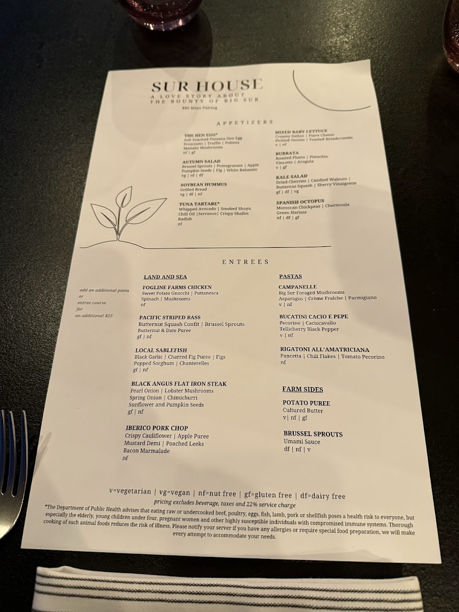 Welcome to The Sur House, where culinary excellence meets breathtaking views. Nestled along the stunning Big Sur coastline, this restaurant offers an unforgettable dining experience enriched by exceptional service. Patrons rave about the professional and friendly staff who create a warm and inviting atmosphere.